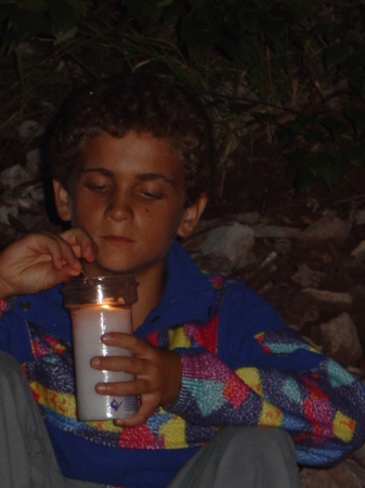 • Sedim ob prižgani svečki z napisom Daritev, Stržišče 2023
