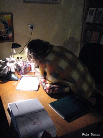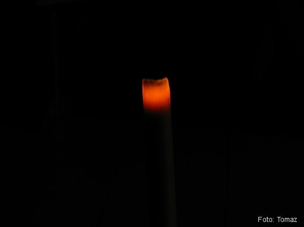 • Sedim ob prižgani svečki z napisom Daritev, Stržišče 2023