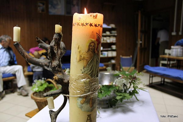• Sedim ob prižgani svečki z napisom Daritev, Stržišče 2023